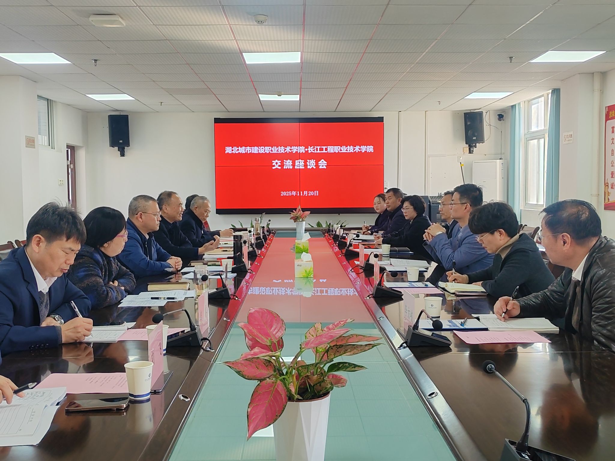 11月20日,湖北城市建设职业技术学院党委书记、校长董文斌一行来校交流,党委书记马大奎,党委副书记、校长杨道远,党委委员、副校长刘文胜,驻校纪检监察组组长、党委委员、纪委书记刘合强热情接待了客人。